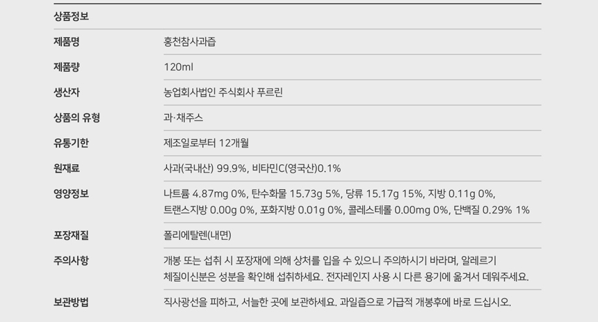 강원도 홍천 사과즙 120ml (HACCP인증,학교급식제품) 30포,50포